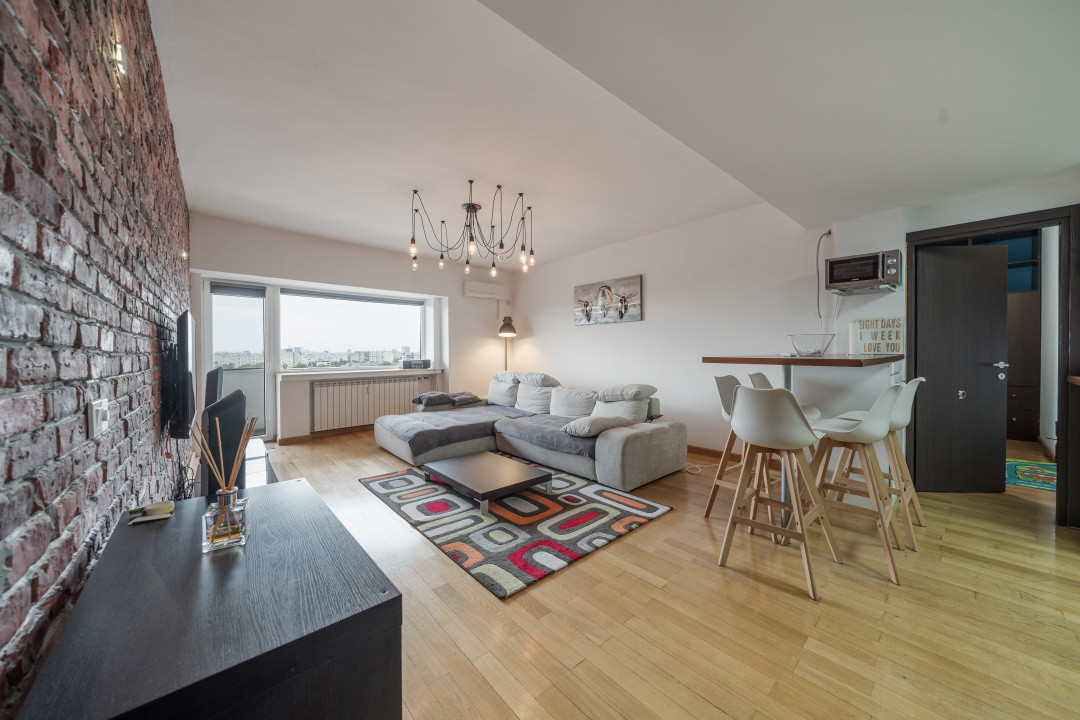 Avem plăcerea să vă prezentăm un apartament deosebit cu 2 camere transformat în 3, aflat pe strada Maior Coravu, chiar lângă intrarea în Stadionul Național, la etajul 10 al unui bloc reabilitat termic. Locația oferă o priveliște spectaculoasă asupra parcului, un avantaj unic al locuirii la ultimul nivel, unde vă bucurați de liniște, intimitate, lumină naturală din abundență și de o panoramă greu de egalat. Suprafața generoasă de peste 75 mp este valorificată printr-o compartimentare modernă și practică, apartamentul fiind complet utilat cu electrocasnice de calitate: mașină de spălat vase, două aparate de aer condiționat, mașină de spălat rufe, frigider și altele necesare unui trai confortabil. Bucătăria deschisă creează continuitate cu zona de living, dormitorul matrimonial este spațios și luminos, camera suplimentară poate fi utilizată ca dormitor pentru copil, birou sau cameră pentru oaspeți, iar baia beneficiază de aerisire naturală. Balconul, cu acces atât din living cât și din dormitor, completează atmosfera oferind un spațiu perfect pentru relaxare. Proximitatea imediată a parcului aduce un plus de valoare rezidențială, transformând acest apartament într-o alegere ideală pentru cei care își doresc un cămin modern, primitor și cu o poziționare privilegiată.
