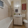În partea stângă regăsim bucătăria, o debara utilă, cele două dormitoare bine proporționate și baia prevăzută cu fereastră exterioară, esențială pentru o aerisire corectă.
