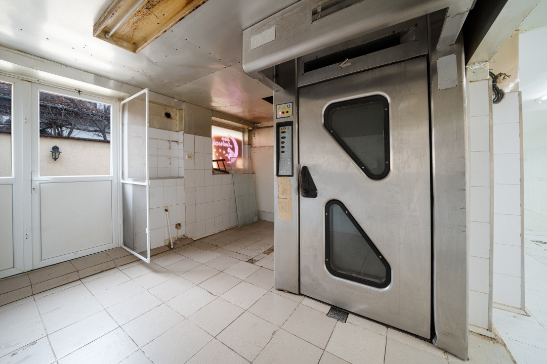 Proprietatea a funcționat anterior ca spațiu de producție pentru produse de panificație și patiserie, fiind adaptată pentru obținerea autorizațiilor necesare desfășurării activității, cu organizare eficientă a fluxului de marfă, zonă dedicată vestiarelor pentru angajați, grup sanitar, alimentare cu curent trifazic 380V pentru echipamente profesionale și cuptoare industriale